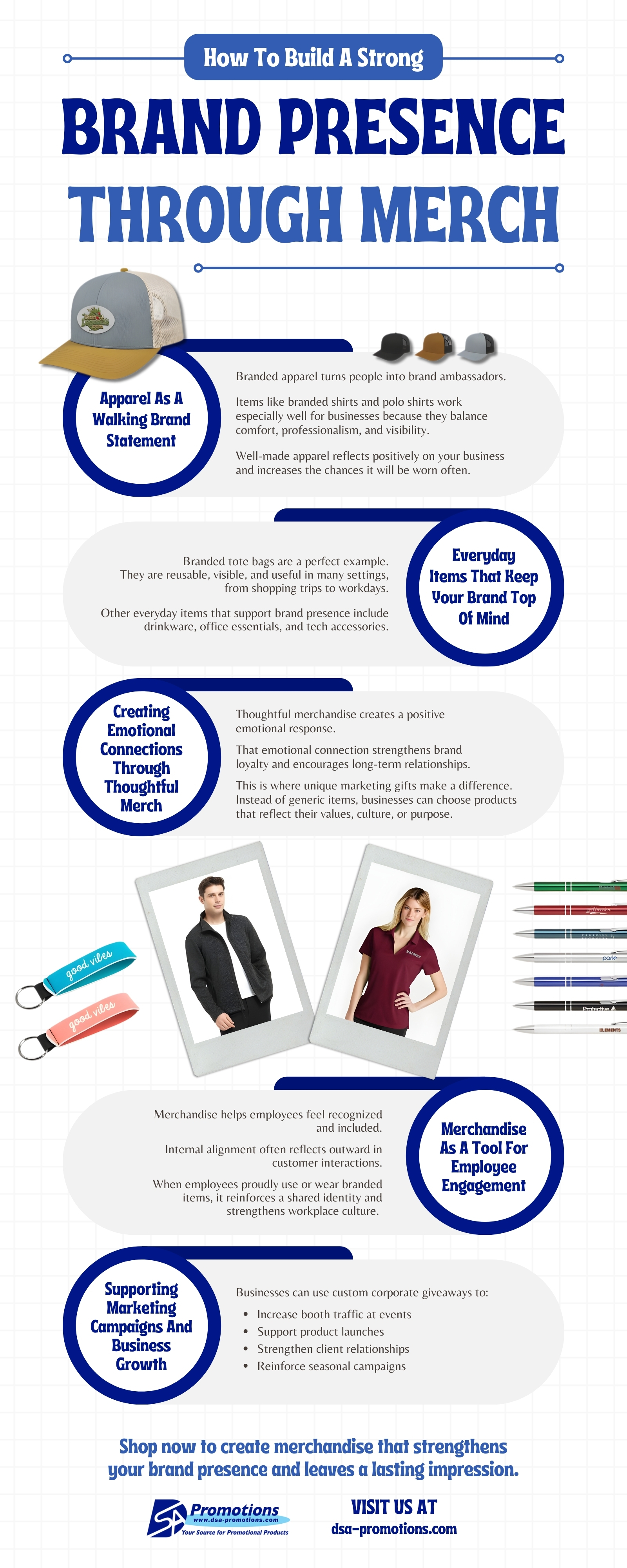 Building a powerful brand presence goes beyond digital marketing and advertising. Custom merchandise plays a key role in keeping your brand visible, memorable, and trusted. Thoughtfully designed promotional products turn everyday items into marketing tools that work for your business around the clock.